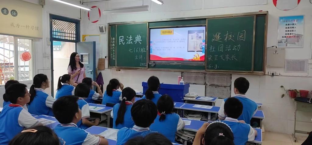 活动中,武向朋给浉河中学的学生讲述了当今世界两大法系——大陆法系与英美法系的区别,使同学们从宏观上了解世界法系的背景知识。随后,她从动画视频导入,以小明为例,讲述了小明一生的每个阶段都与民法典息息相关。最后,她与同学们互动交流,进行民法典知识快问快答游戏活动。