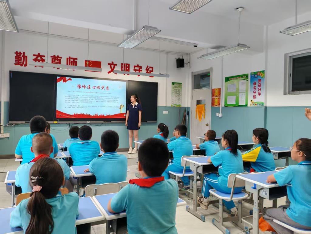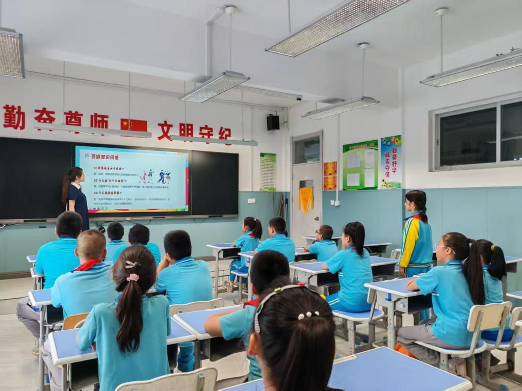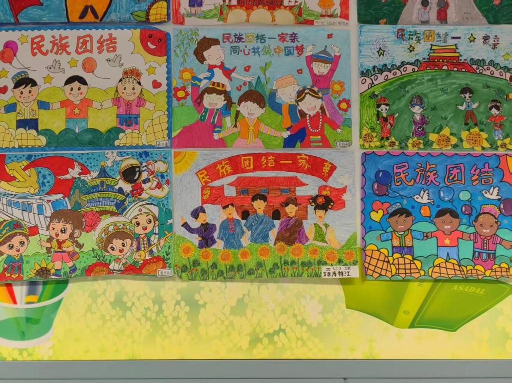 建党节当天,实践团成员带领学生齐唱《没有共产党就没有新中国》,在激昂的旋律中激发爱国热情,增强民族自豪感。随后的座谈会中,实践团同当地教师深入交流,围绕教学资源共享、活动落地及民族团结教育融入课堂等议题展开研讨;在“石榴籽心连心,团结之花绽放校园” 民族团结主题课堂,成员们以幻灯片和短视频展示信阳师范大学风貌,分享与多民族同学相处经历,并结合 “豫疆情深,感恩成长路” 河南援疆成果展,介绍河南援建该校食堂、体育馆等设施情况,凸显援疆工作对教育质量提升的重要作用;在“团结杯竞智赛,民族知识我最棒” 知识竞赛中,学生积极参与课堂问答、抢答环节,学习民族政策知识;在“彩绘团结情,共筑中国梦” 手抄报绘画环节,大家用手中的画笔描绘对民族团结的理解。